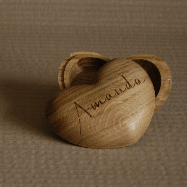 From engraved boxes to custom hearts and ring dishes, we use only sustainably sourced timber from reputable sources. This ensures the gifts you treasure are kind to the planet and rich with personal meaning, handcrafted to be as unique as the person receiving it.